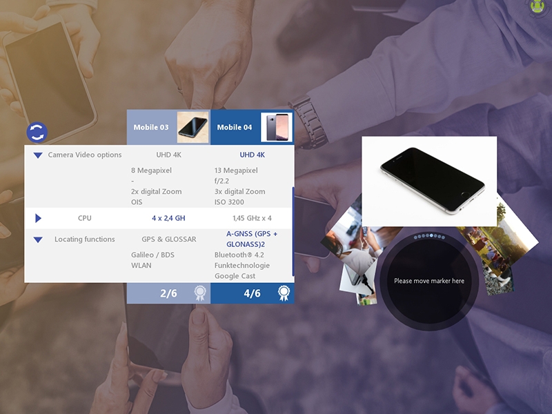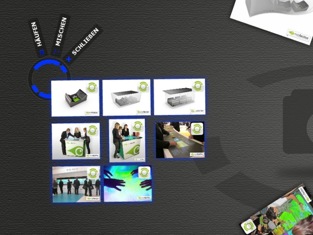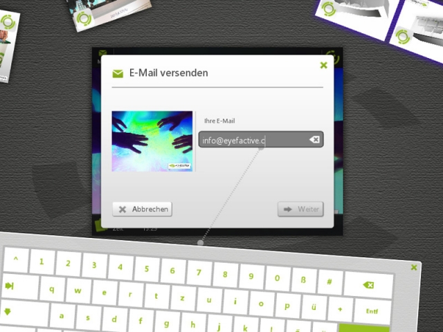 Die Attraktion auf Veranstaltungen und Events: Per WiFi-Verbindung (W-LAN) werden Digitalfotos innerhalb von Sekunden nahezu magisch auf das Display übertragen. Besucher, Gäste und Kunden finden sich auf live geschossenen Fotos unmittelbar auf dem Display wieder. Die Bilder lassen sich mit intuitiven Handbewegungen frei bewegen, vergrößern und drehen. Per virtueller Tastatur landen die gewünschten Fotos im E-Mail Postfach des eingegebenen Empfängers.