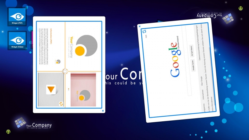 Bei dieser app nutzen Sie gleichzeitig mehrere Multimedia-Terminals als Audioplayer: Auf dem interaktiven Touch Display befinden sich multimediale Inhalte in Form von Kreissymbolen mit Logos der enthaltenen Dateien. Ziehen Benutzer eines der virtuellen Objekte in ihren MediaPlayer, startet der entsprechende Inhalt. Je nachdem, wieviele Sound-Kanäle eingestellt sind, kann jeder Benutzer entweder parallel über Kopfhörer das Audiosignal der Medien-Datei hören - oder nacheinander geteilt über die Boxen des jeweiligen Devices.